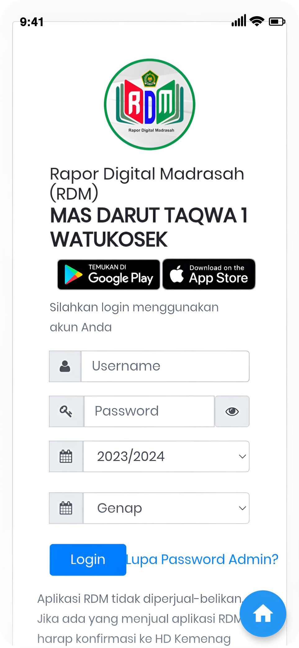 Download Aplikasi dengan versi terbaru jika ada update terbaru dari operator Madrasah